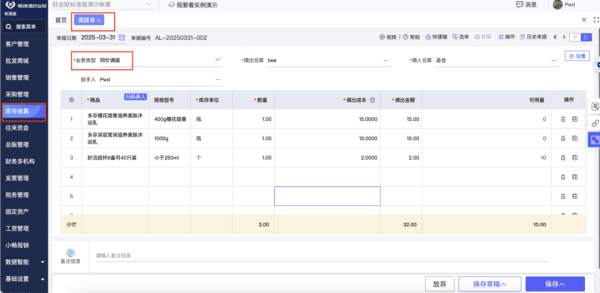 多倉(cāng)管理與調(diào)撥: 在系統(tǒng)中建立與實(shí)際對(duì)應(yīng)的多個(gè)門(mén)店倉(cāng)和總倉(cāng)檔案。通過(guò)【調(diào)撥單】清晰記錄貨品在各倉(cāng)庫(kù)間的流轉(zhuǎn),確保賬實(shí)相符。